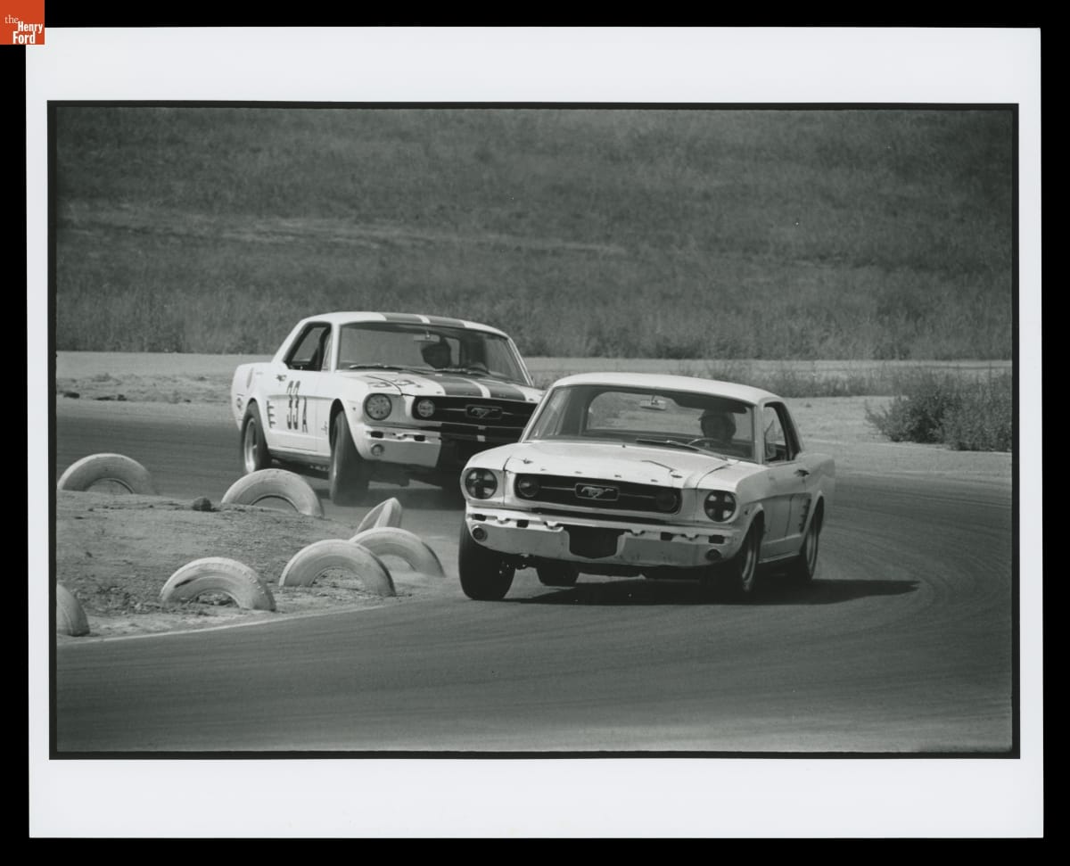 Photographer Dave Friedman captured and preserved auto racing history through his work, and through his collection of works by other photographers. This photo was taken at California's Riverside International Raceway in September 1966 during a Trans-Am four-hour race. Jerry Titus took the checkered flag driving the #1 Ford Mustang. The Trans-Am Series was created for popular pony cars like Mustang.