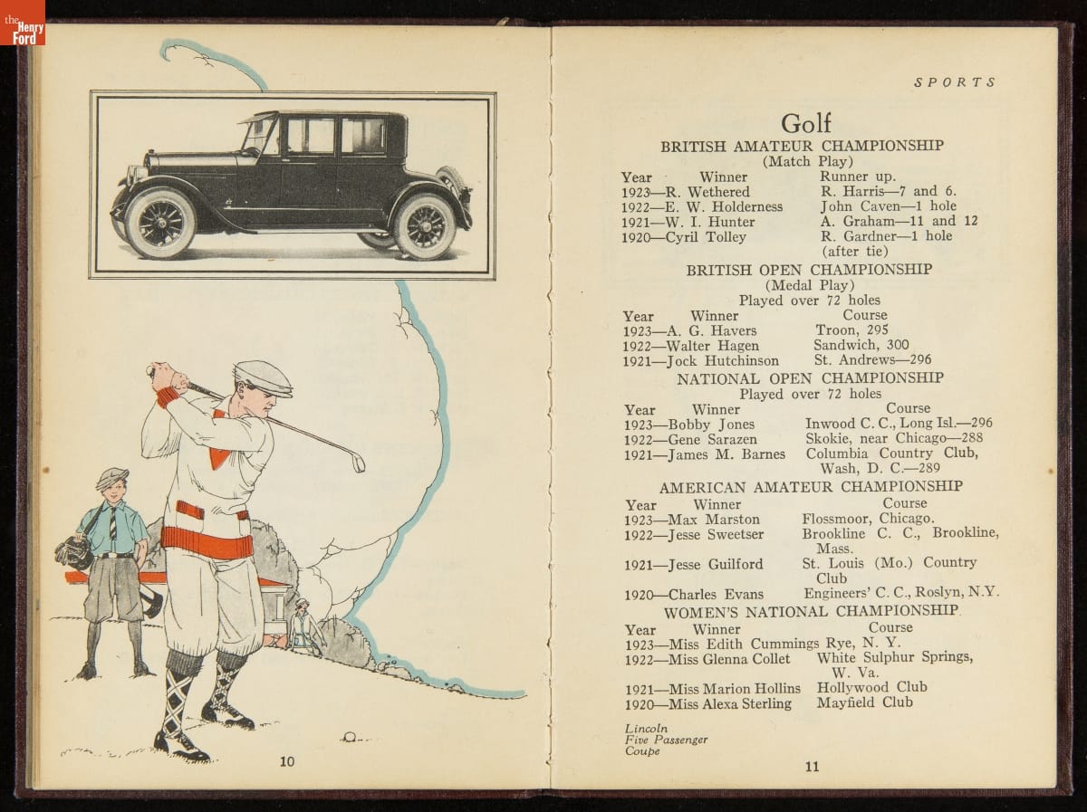 Lincoln Motor Company Sales Literature, "Sports," 1924