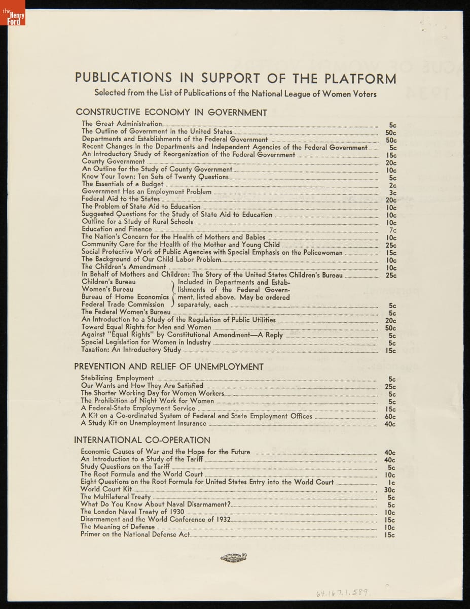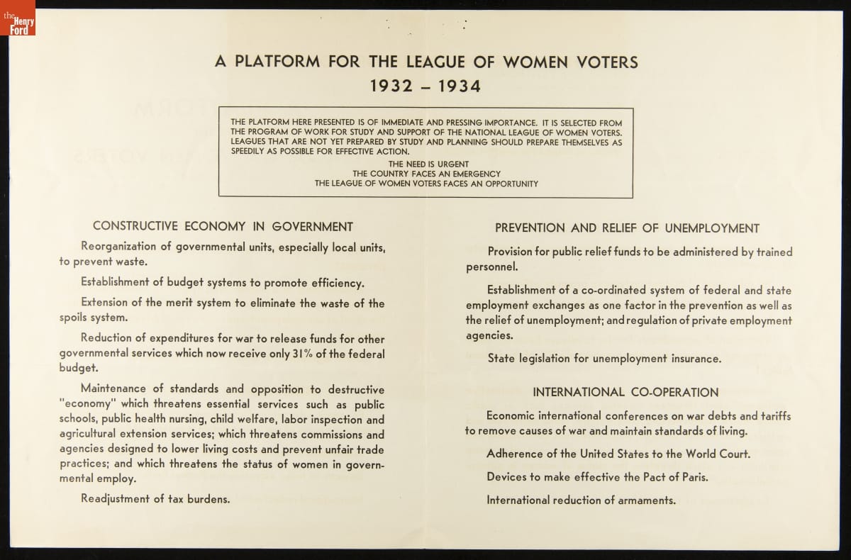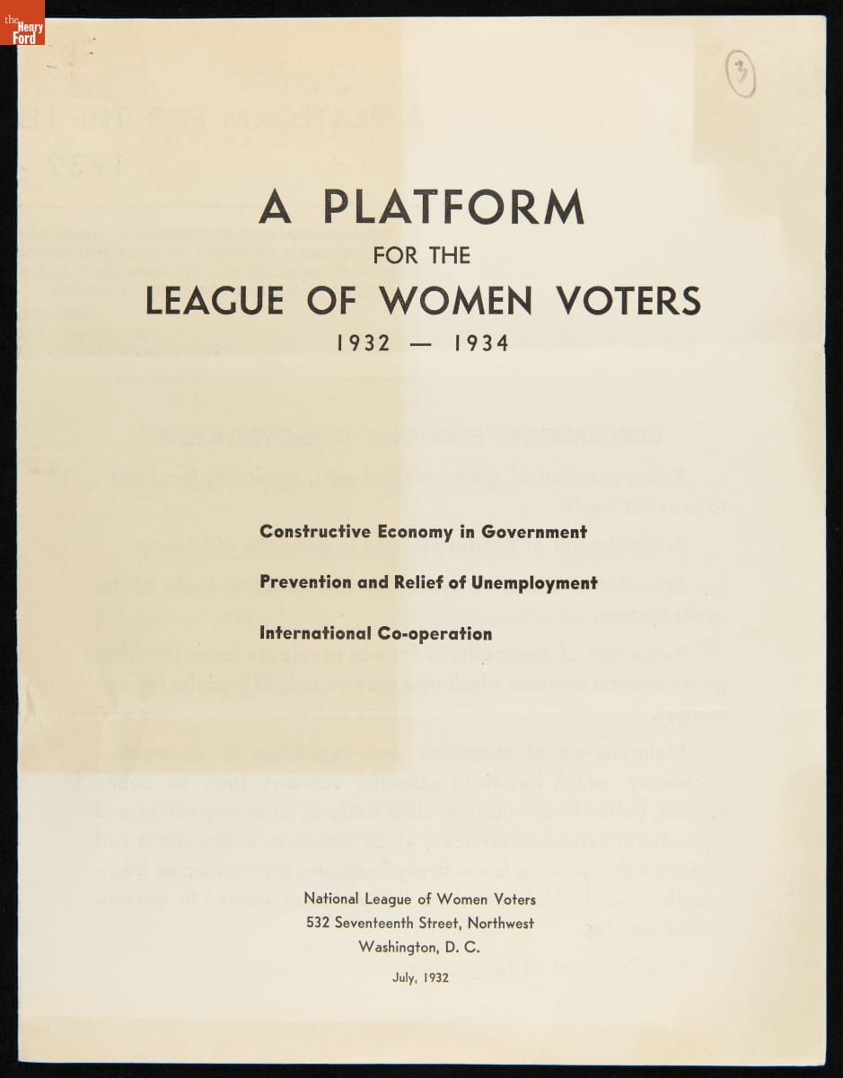 Brochure, "A Platform for the League of Women Voters, 1932-1934"