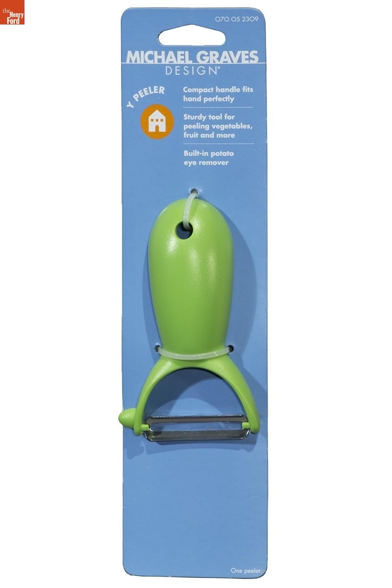 MICHAEL GRAVES / DESIGN(R) / Y PEELER / For Right or Left Handed Use / Sharp stainless steel blade / Hole for hanging / Hand washing recommended / MICHAEL GRAVES, recipient of the / National Medal of Arts and the American / Institute of Architects' Gold Medal, has / been at the forefront of [...]/ Michael Graves / Recyclable Paperboard / May not be recyclable in your area / Distributed by Target Corporation / Minneapolis, MN 55403 / Made in China / (c)2010 Target Brands, Inc. / All Rights Reserved / Shop Target.com