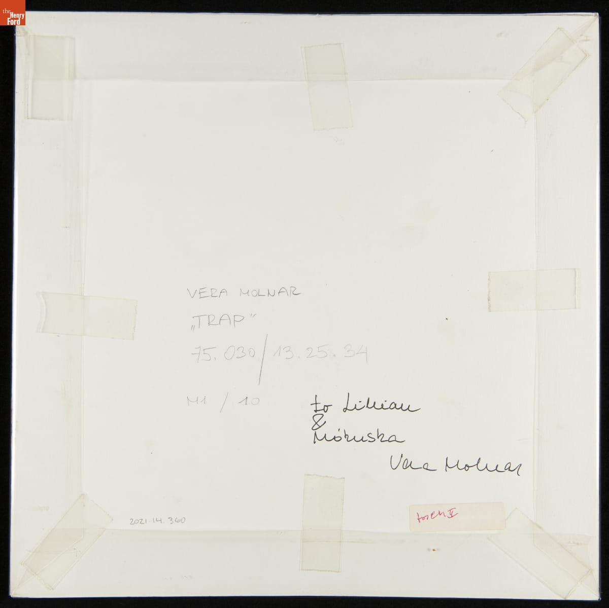 VERA MOLNAR / "TRAP" / 75.030 / 13.25.34 / MI / 10 / to Lillian / & / [illegible] / Vera Molnar