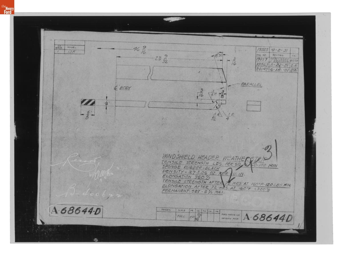 Drawing, "Windshield Header Weatherstrip," Ford Model A, June 18, 1931