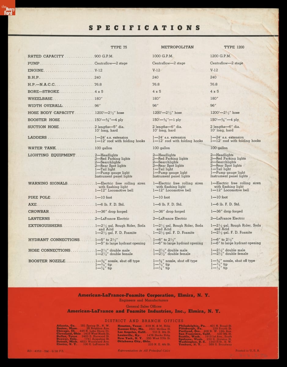 American-LaFrance and Foamite Corporation Catalog, "The Metropolitan: The World's Finest Fire Engine!," 1938