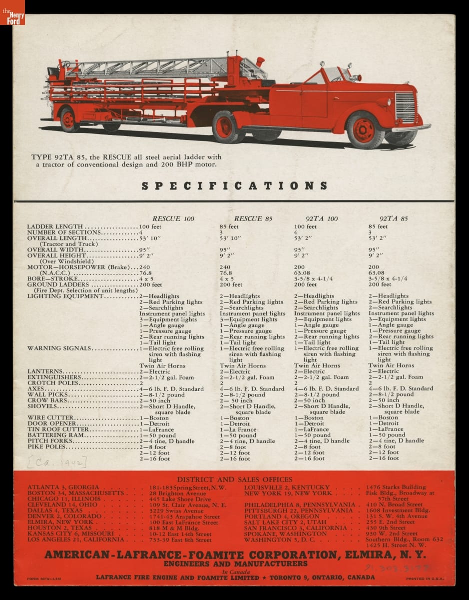 American-LaFrance and Foamite Corporation Catalog, "Rescue Aerials: There is Safety in Steel," circa 1942