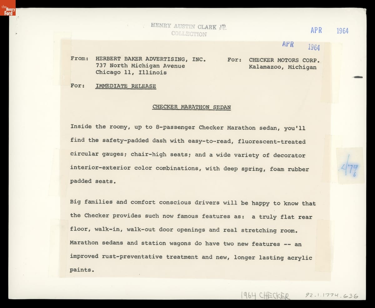 Checker Marathon Sedan, April 1964