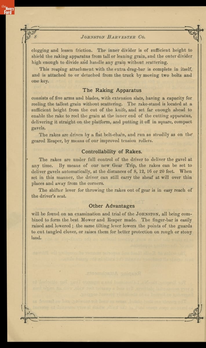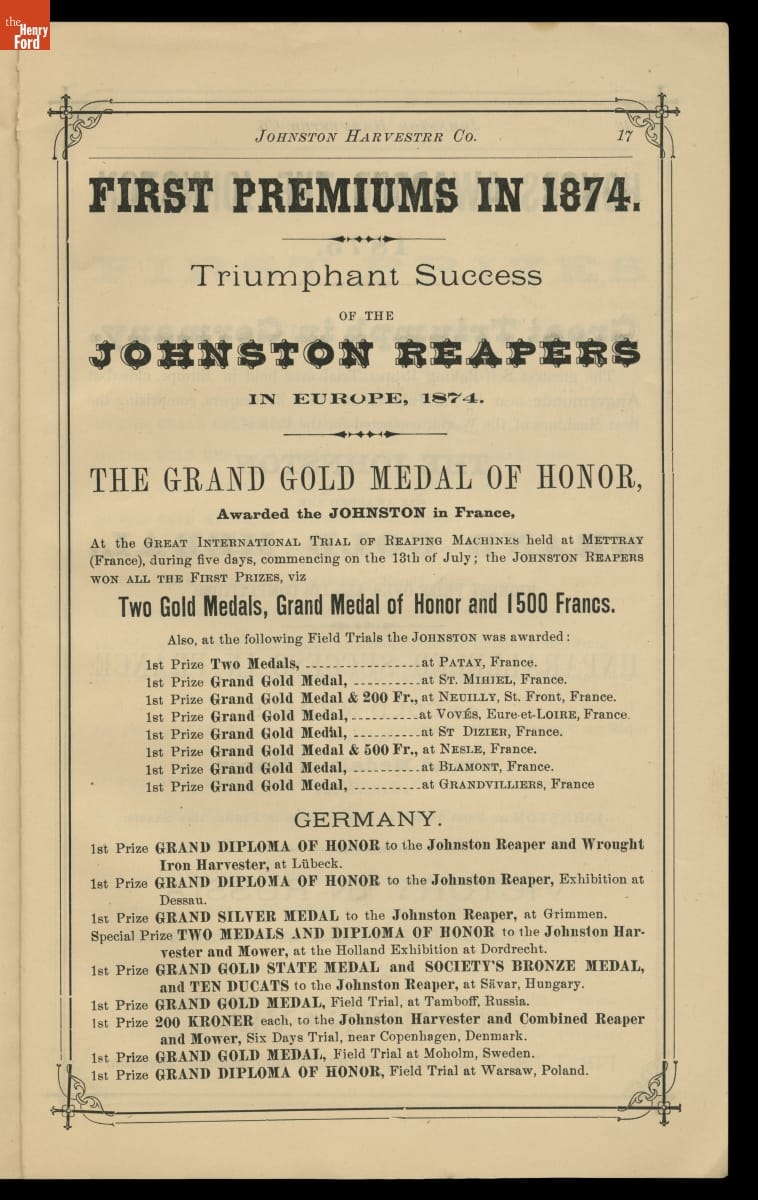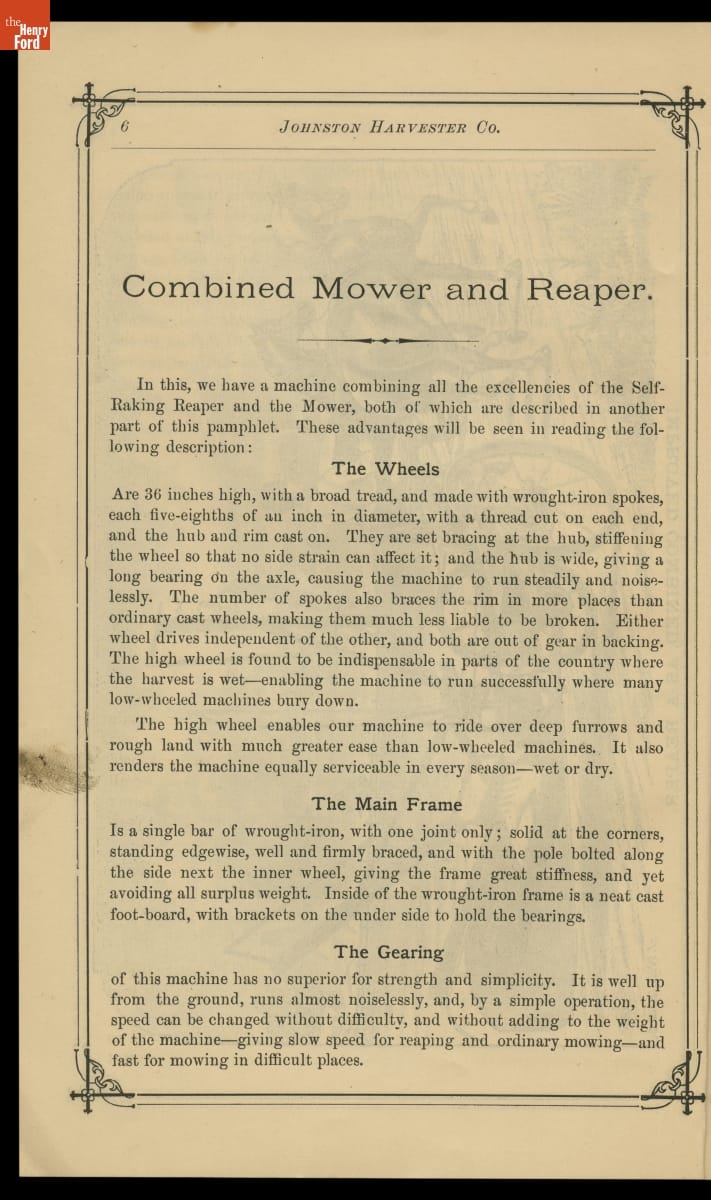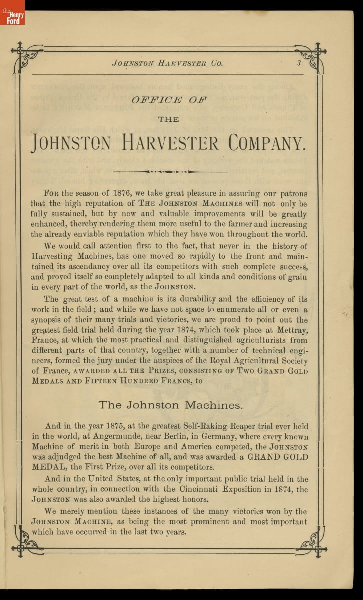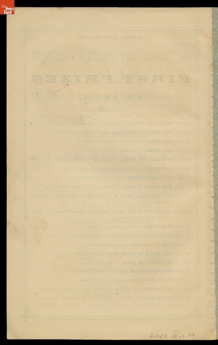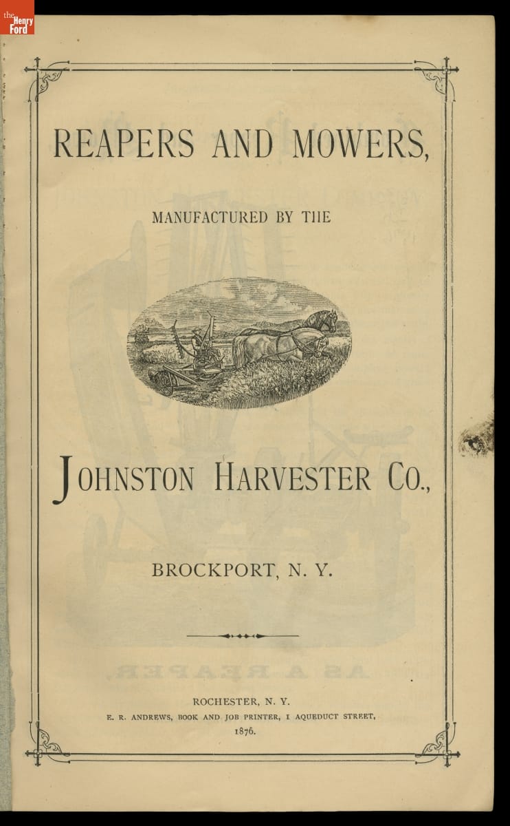 Trade Catalog, "Reapers and Mowers, Manufactured by the Johnston Harvester Co., Brockport, N.Y.," 1876