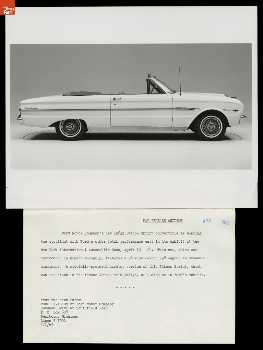 Ford entered the small-car market in the 1960 model year. Ford's Falcon was a hit, selling 435,676 units in its first year. The Sprint, introduced mid-1963, was the sporty version of the Falcon with a V-8 engine and bucket seats. The Falcon Sprint never quite caught on with buyers. It was overshadowed by Ford's Mustang introduced in April 1964.