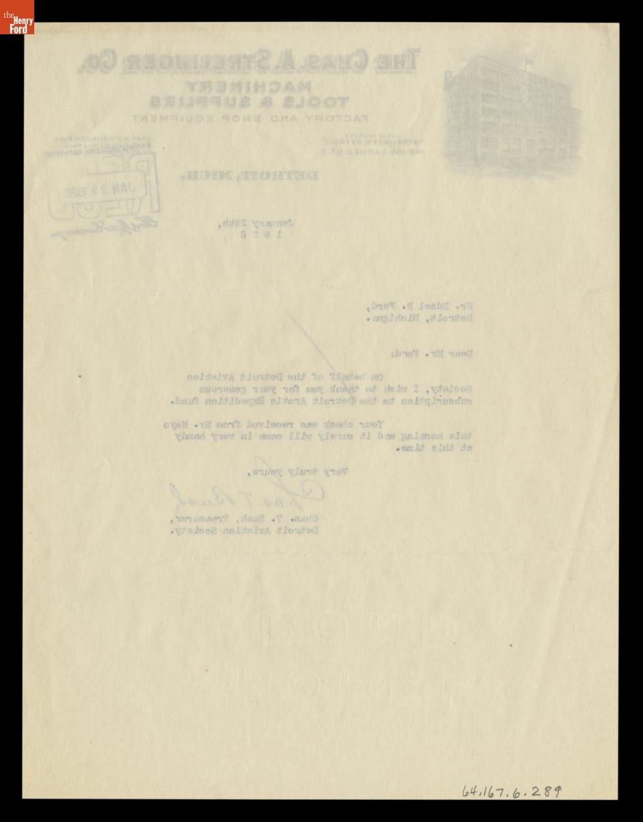 Letter to Edsel Ford from the Detroit Aviation Society regarding the Detroit Arctic Expedition, January 28, 1926
