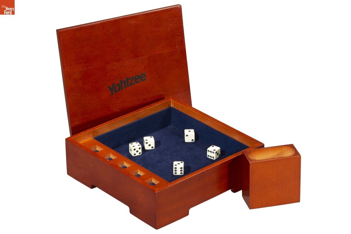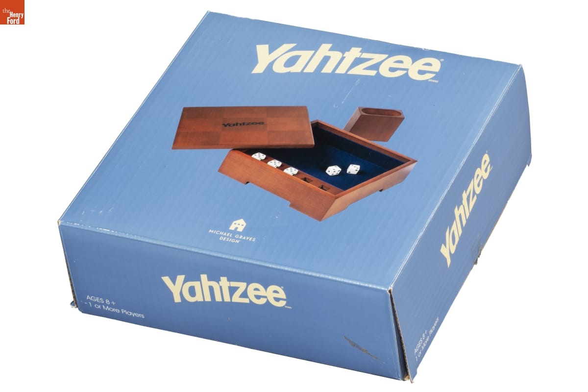 Yahtzee(R) BRAND / The Michael Graves edition of the YAHTZEE(R) game is beautiful and fun! / Featuring a handsome, furniture quality cherry-stained hardwood and / veneer case, its elegance [...] / YAHTZEE was invented in the 50's by a couple who played it aboard their boat - they called it the "Yacht" game. More than 40 years later, YAHTZEE / is now America's favorite [...] / AGES 8+ / 1 or More Players