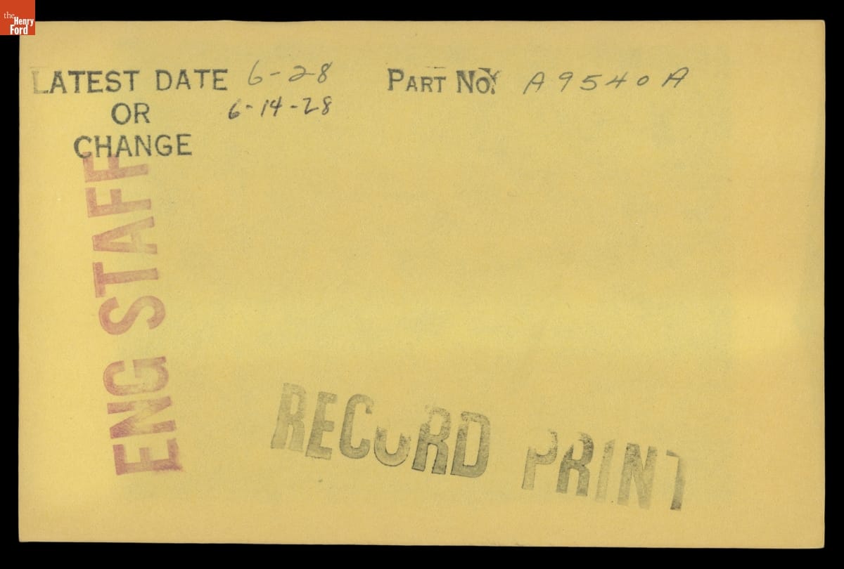 The Ford Motor Company created over a million parts drawings from 1903 to 1957. Many of these drawings specify engineering requirements for the components of Ford-made vehicles--including automobiles, trucks, tractors, military vehicles and Tri-motor airplanes. Others document assembly components, stages of casting and forging, or experimental designs. Beginning in the 1940s, Ford transferred the drawings to microfilm.