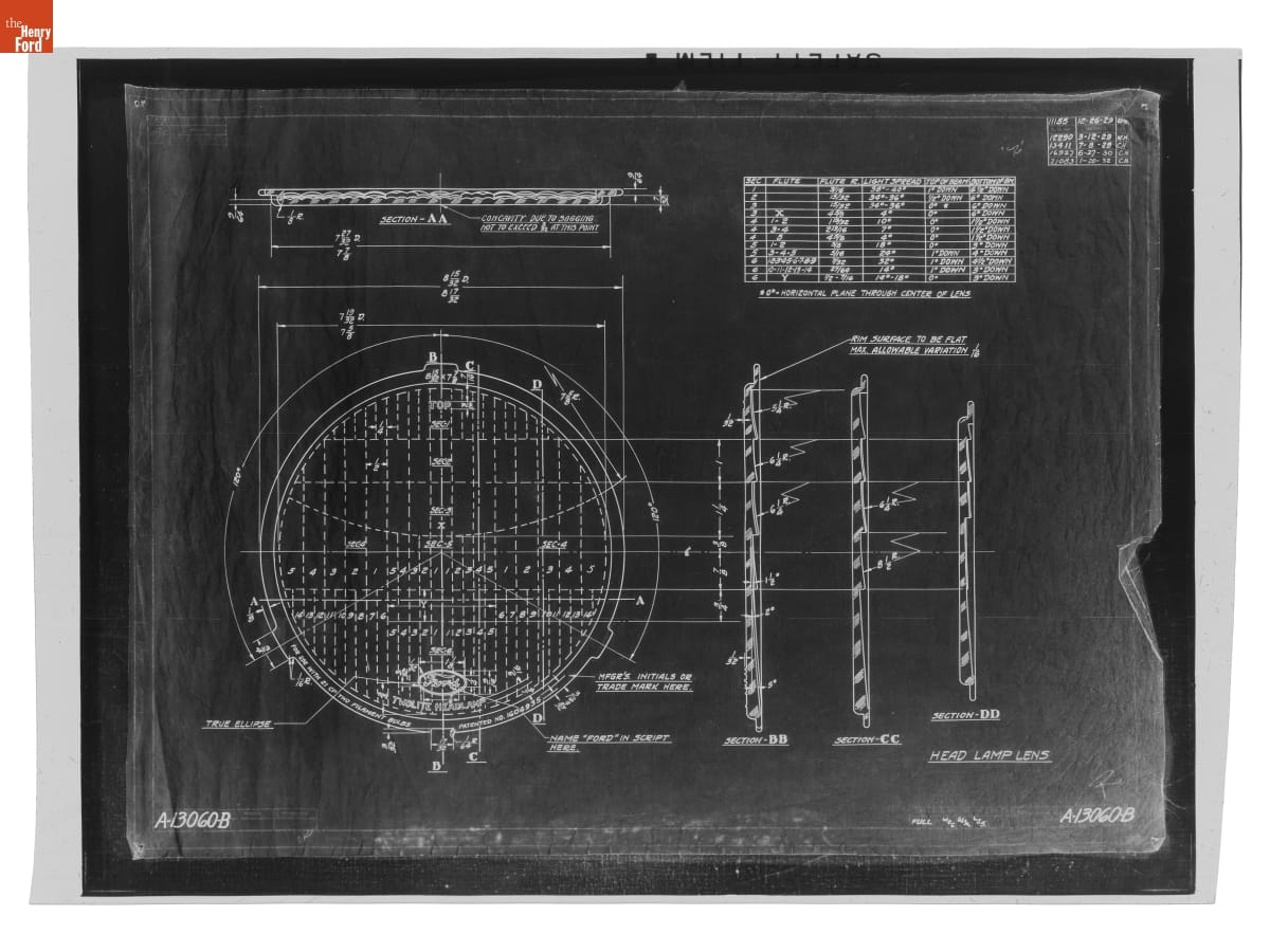 Drawing, "Head Lamp Lens," Ford Model A, January 20, 1932