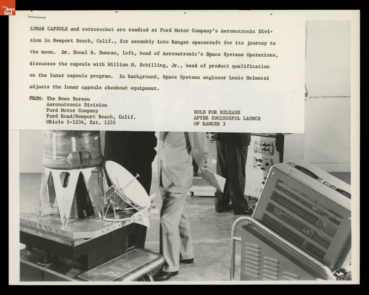 Lunar Capsule and Retrorocket for NASA Ranger 3 Spacecraft Being Readied for Assembly, January 1962