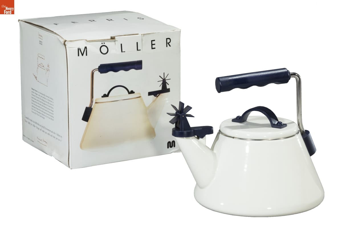 THE FERRIS KETTLE / designed exclusively / for MOLLER DESIGN / by / Graves / MICHAEL GRAVES / Made in Taiwan