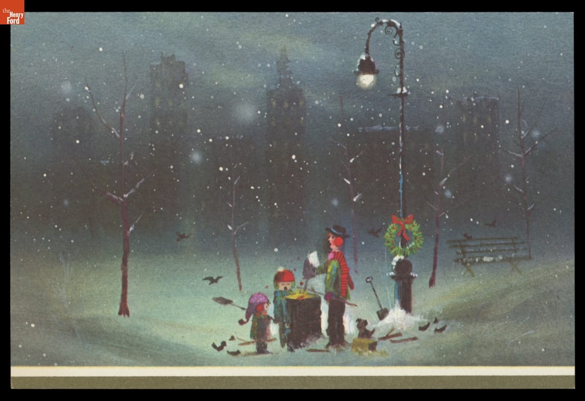 Christmas Card, Carolers under a Street Lamp, 1960-1970