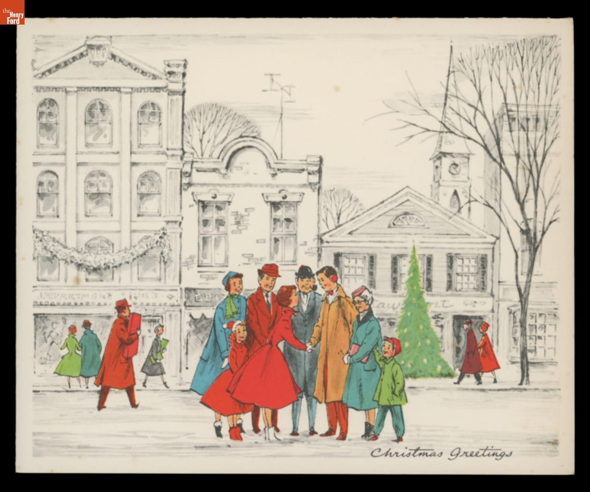 Christmas Card, City Street Scene, "Christmas Greetings," 1955-1965