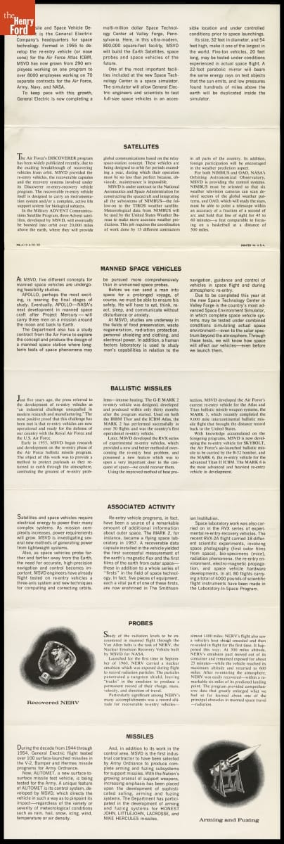 Brochure, "Missile and Space Vehicle Department: A Department of the Defense Electronics Division," circa 1962