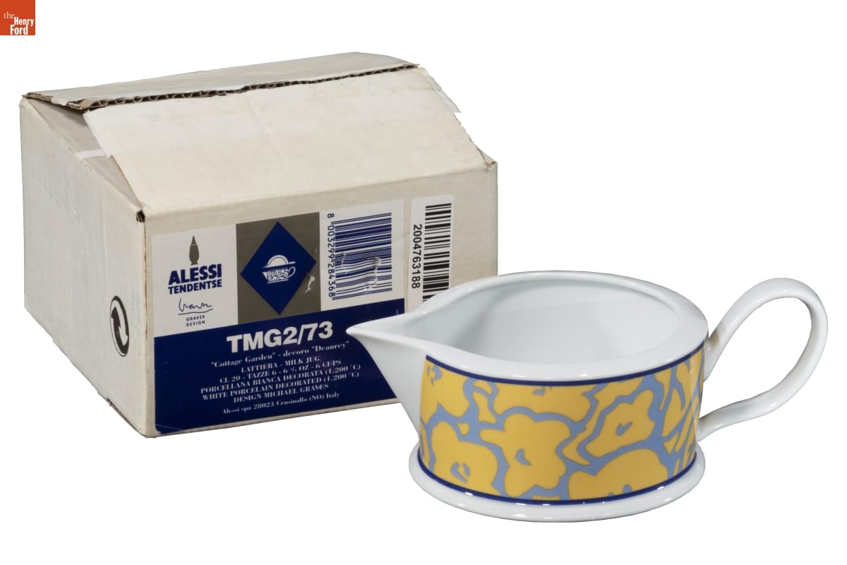 ALESSI / TENDENTSE / Graves / GRAVES / DESIGN / TMG2/73 / "Cottage Garden:" - decoro "Deanrey" / LATTIERA - MILK JUG / CL 20 - TAZZE 6 - 6 3/4 OZ - 6 CUPS / PORCELLANA BIANCA DECORATA (1.200 C) / WHITE PORCELAIN DECORATED (1.200 C) / DESIGN MICHAEL GRAVES / Alessi spa 28023 Crusinallo (NO) Italy