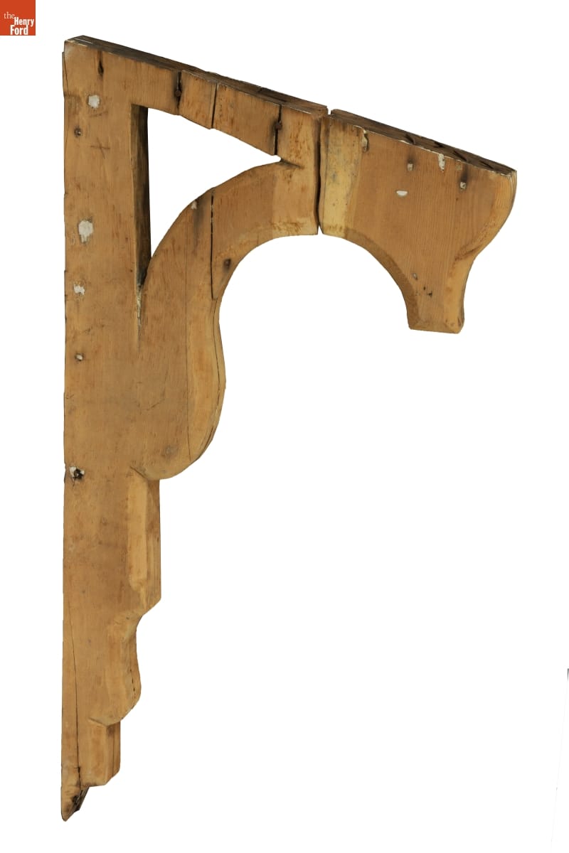 The Detroit Central Market's vegetable shed sheltered vendors and customers from 1861 to 1894. The structure was then removed to Belle Isle and was slated for demolition in 2003 when The Henry Ford acquired it. The reconstructed building--which opened in Greenfield Village in 2022--includes several original cast-iron columns and ornamental woodwork, siding, and other details that convey the Swiss-Chalet aesthetic of the original design.