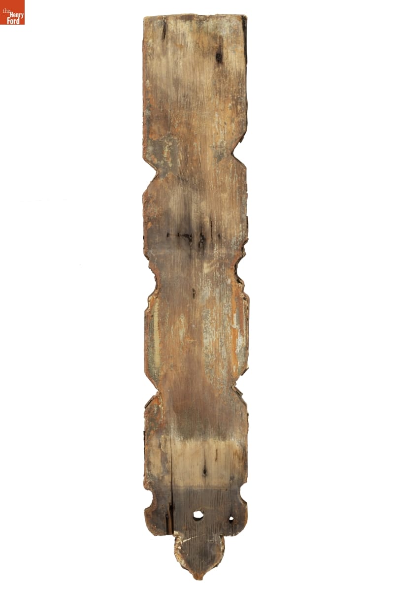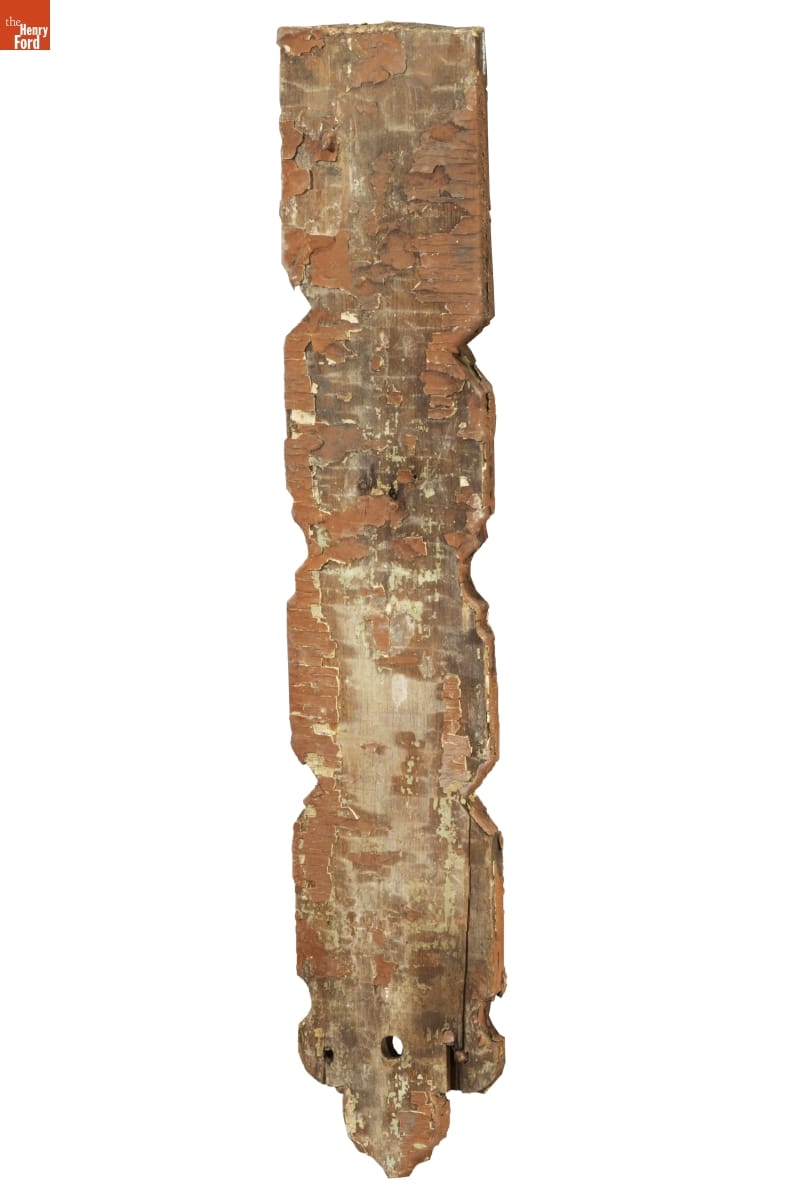 The Detroit Central Market's vegetable shed sheltered vendors and customers from 1861 to 1894. The structure was then removed to Belle Isle and was slated for demolition in 2003 when The Henry Ford acquired it. The reconstructed building--which opened in Greenfield Village in 2022--includes several original cast-iron columns and ornamental woodwork, siding, and other details that convey the Swiss-Chalet aesthetic of the original design.