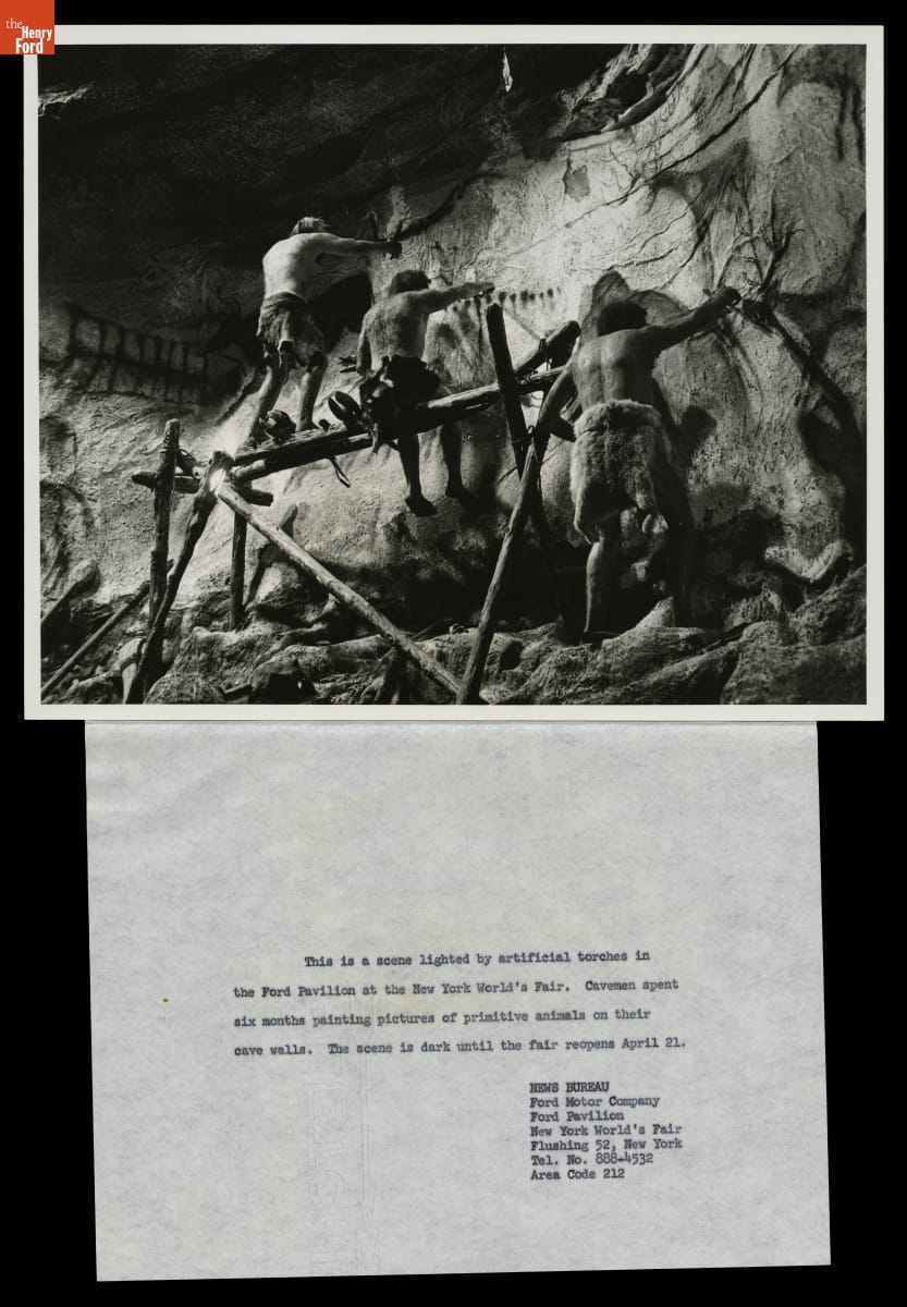 For its pavilion at the 1964-65 New York World's Fair, Ford Motor Company brought in Walt Disney to design a "unique and memorable entertainment adventure" that would outshine its competitors. This became the Magic Skyway ride, in which guests sat in Ford convertibles through a Disney-designed show. After a dinosaur scene, time shifted forward to depictions of cavemen.