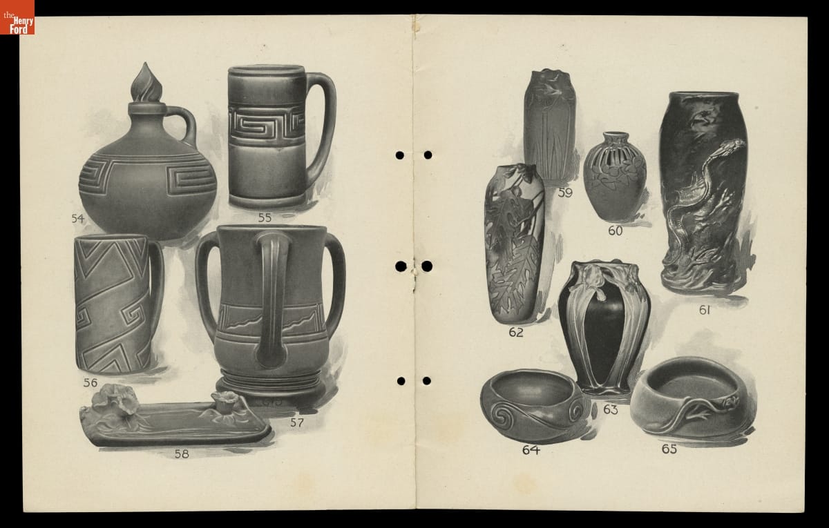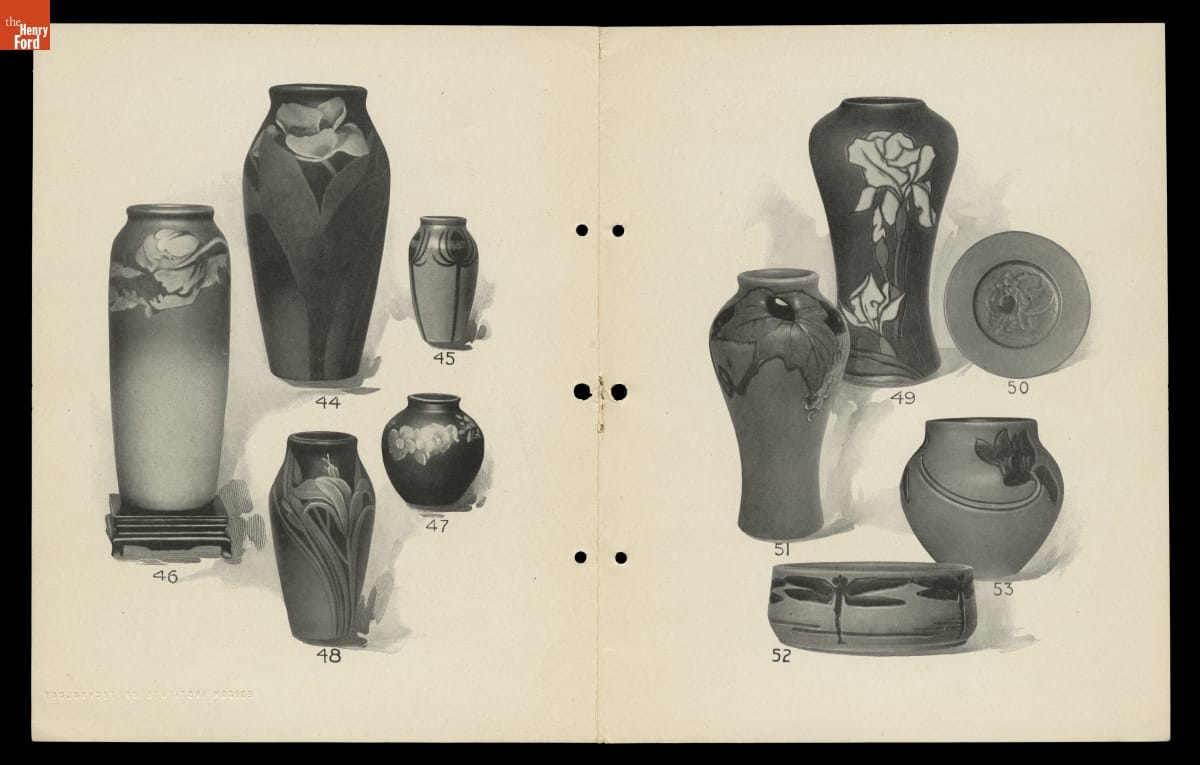 Maria Longworth Nichols (1849-1932) founded Rookwood Pottery--the pioneering art pottery company in America--in Cincinnati in 1880. She hired talented young women (who would not have had opportunities elsewhere) as well as men to create innovative ceramic wares. Trendsetting imagery and glazes made Rookwood famous and helped establish the look of art pottery.