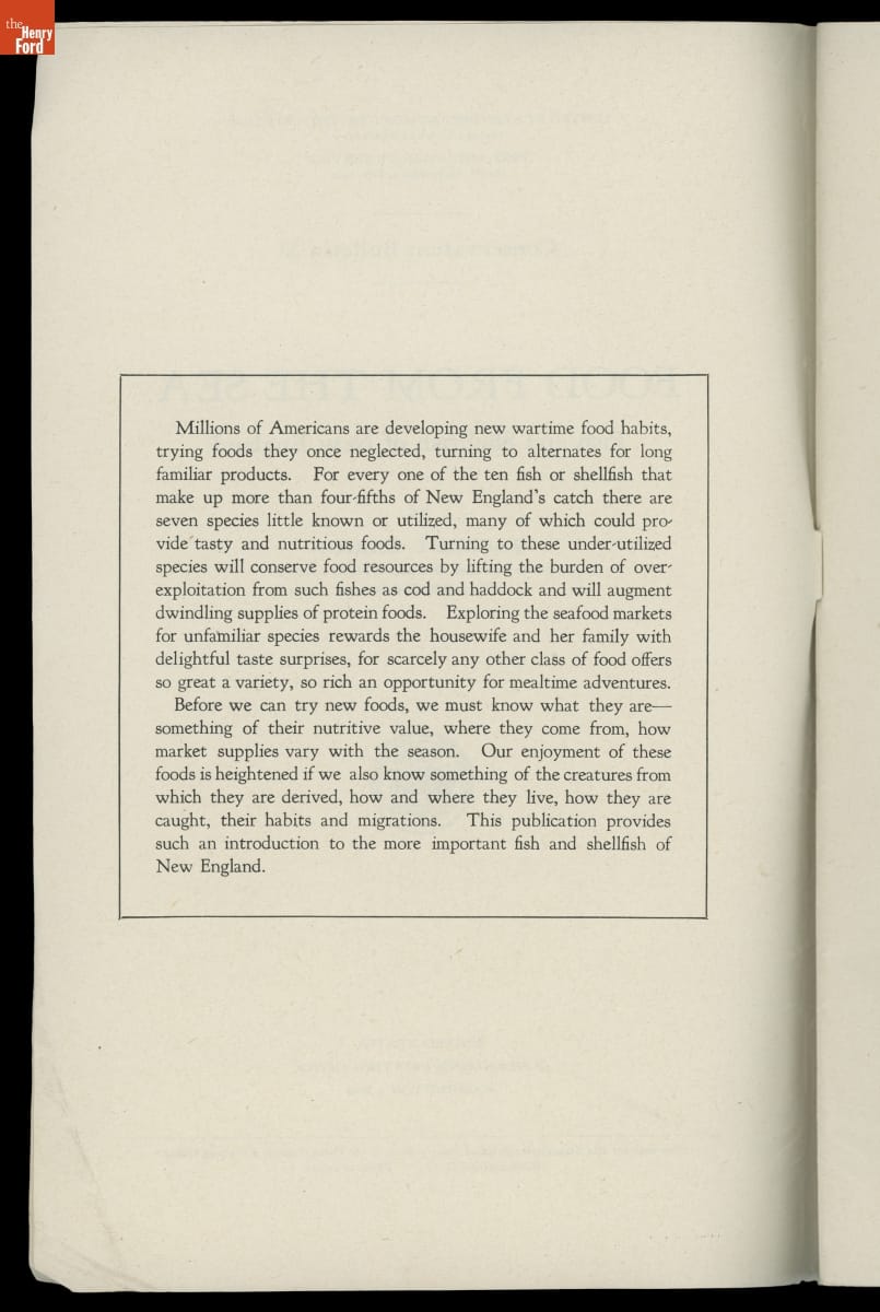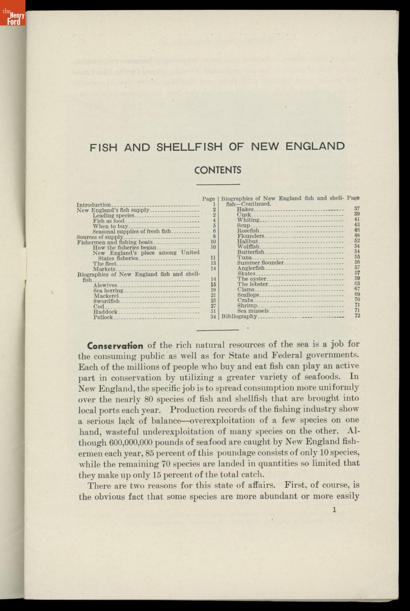 U.S. Department of the Interior Conservation Bulletin No. 33: Food from the Sea, Fish and Shellfish of New England, 1943