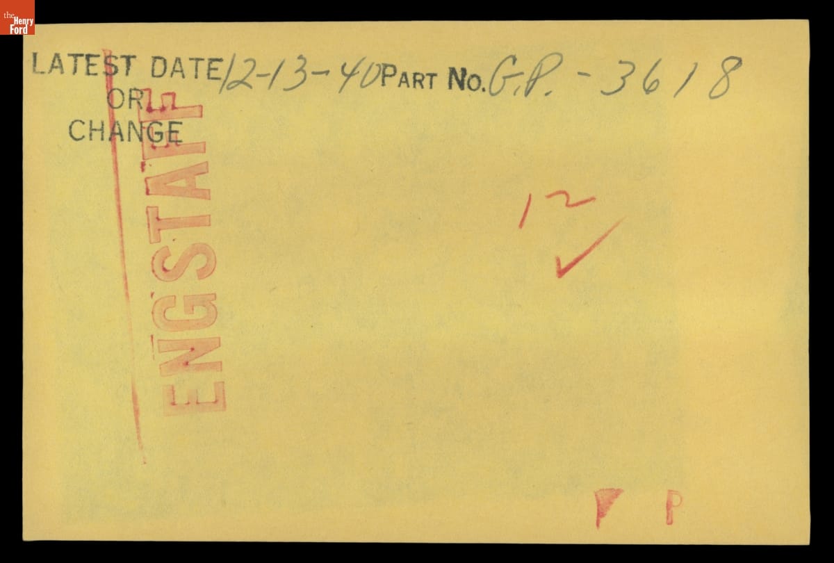 The Ford Motor Company created over a million parts drawings from 1903 to 1957. Many of these drawings specify engineering requirements for the components of Ford-made vehicles--including automobiles, trucks, tractors, military vehicles and Tri-motor airplanes. Others document assembly components, stages of casting and forging, or experimental designs. Beginning in the 1940s, Ford transferred the drawings to microfilm.