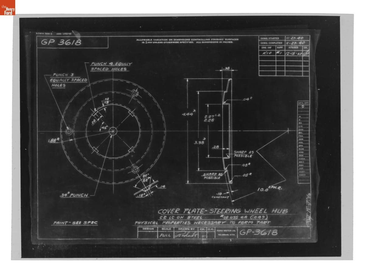 Drawing, "Cover Plate - Steering Wheel Hub," Ford GP, December 13, 1940