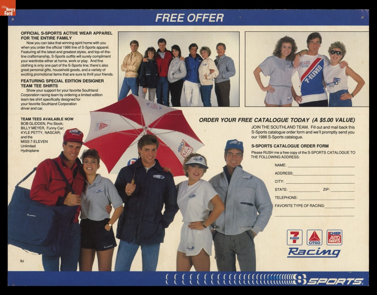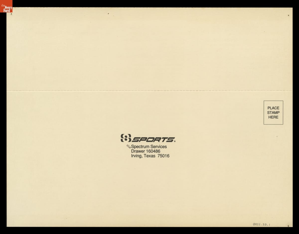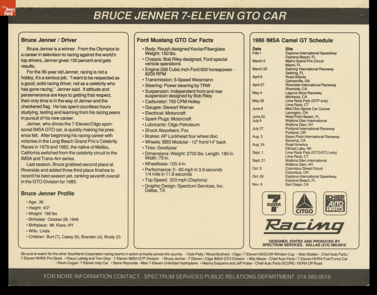 Promotional Material for 7-Eleven Ford Mustang GTO Car Driven by Caitlyn Jenner (Racing as Bruce Jenner), 1986