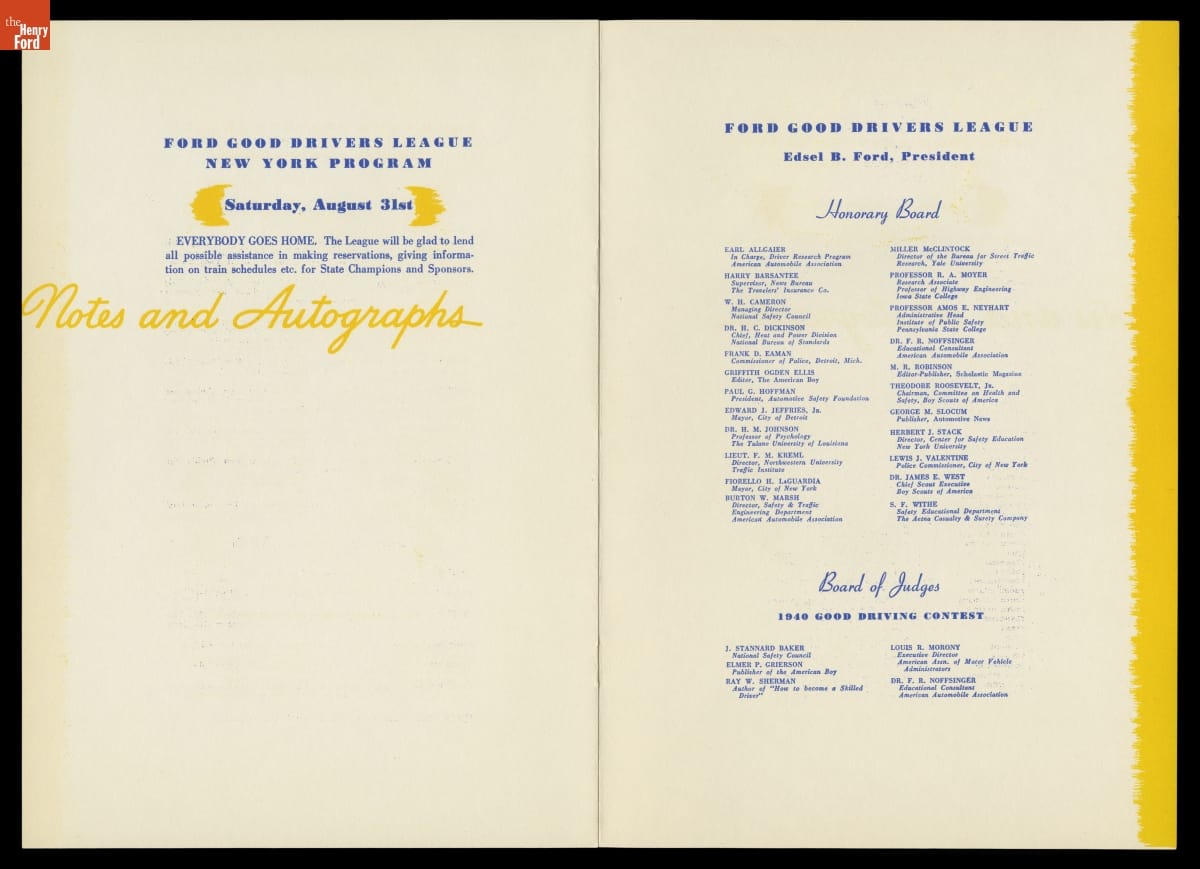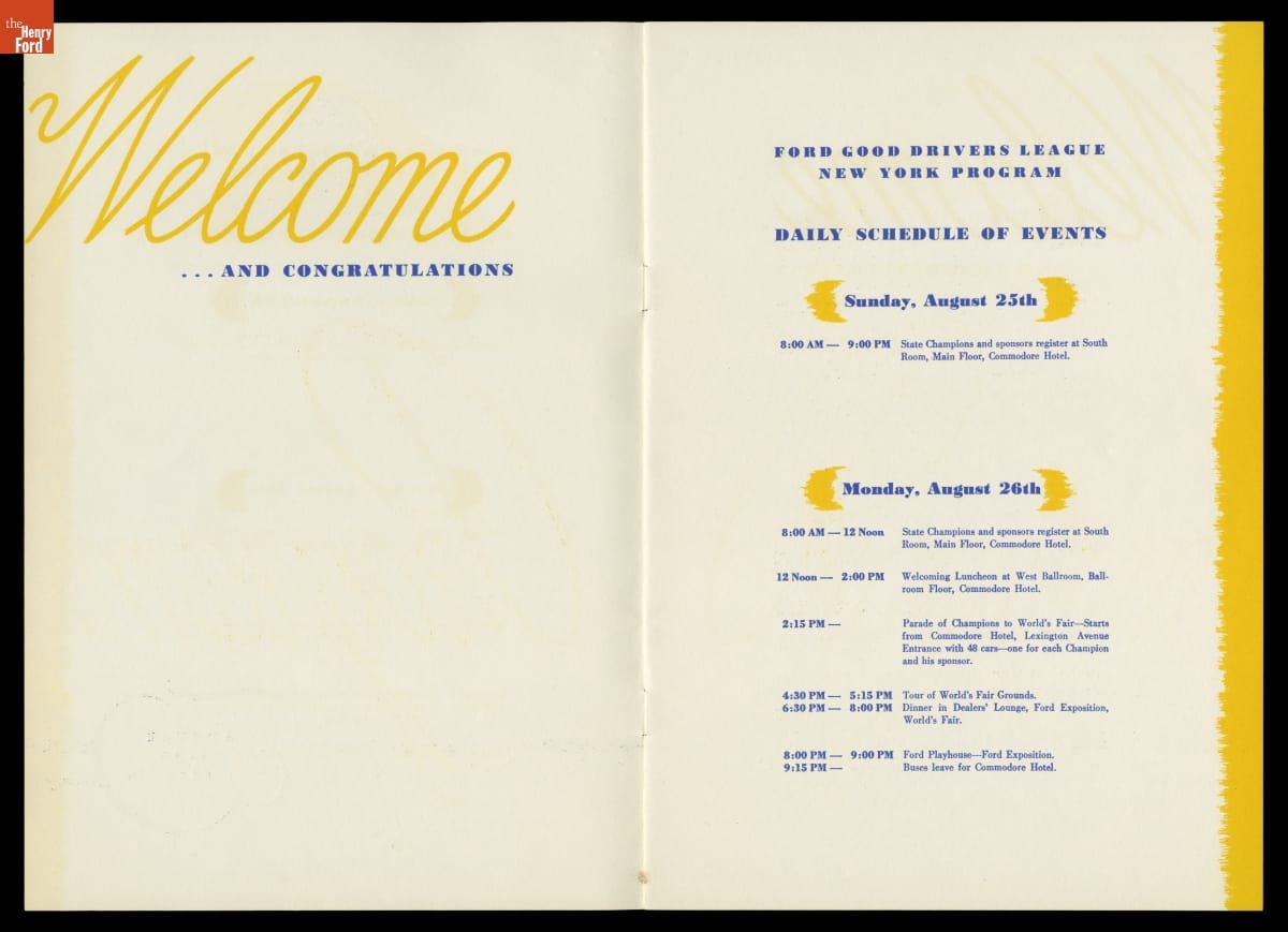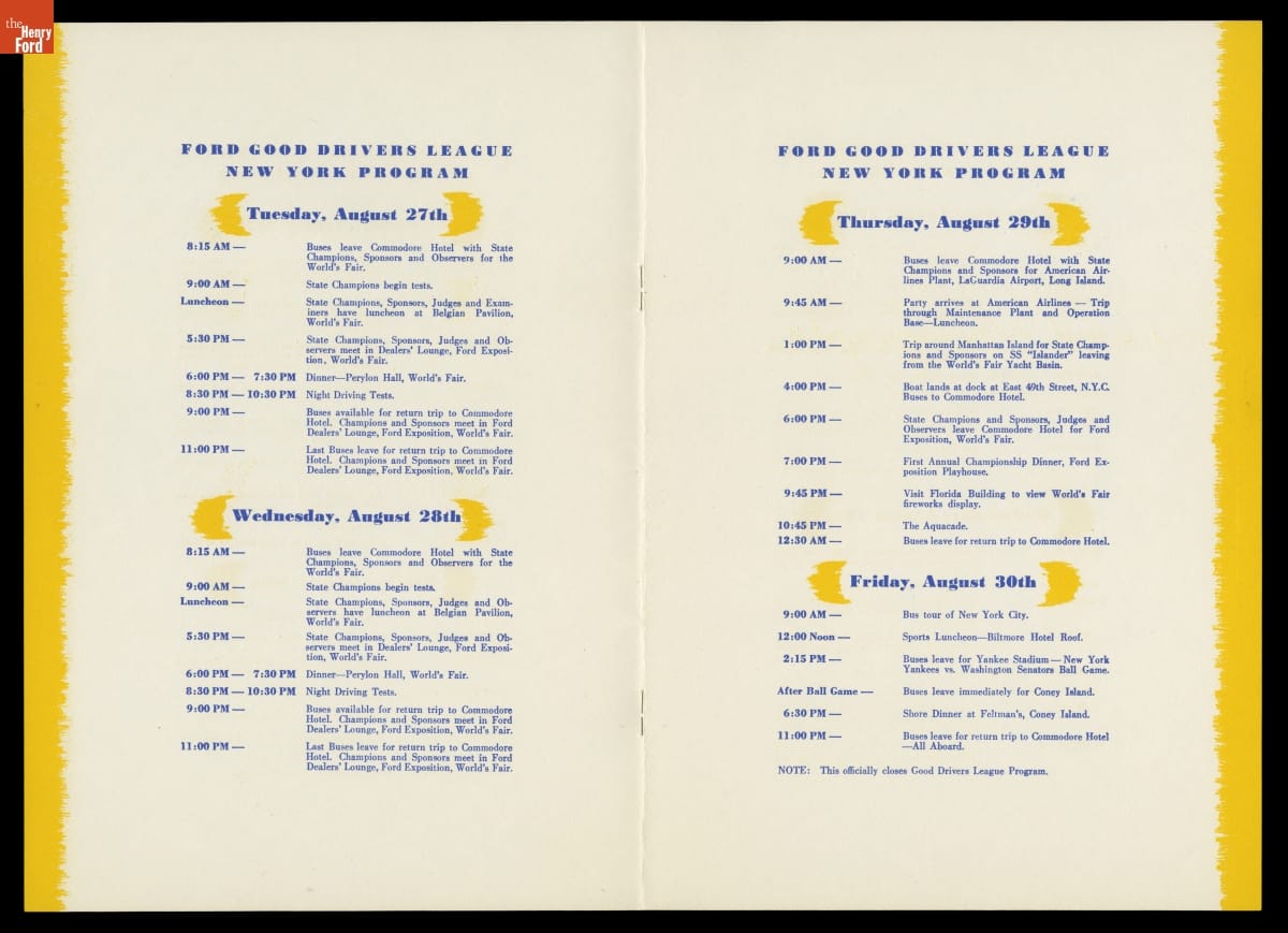 Program for the Ford Good Drivers League National Finals, New York City, August 26-30, 1940