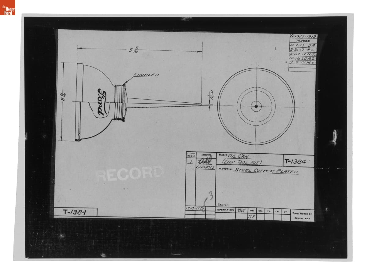 Drawing, "Oil Can (for Tool Kit)," Ford Model T, September 3, 1921