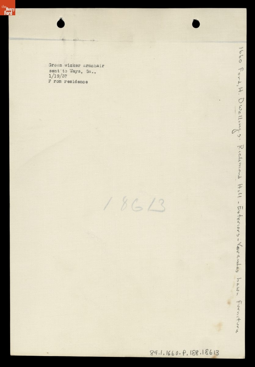 Lawn Chair Sent to Henry and Clara Ford's Richmond Hill Estate, 1937
