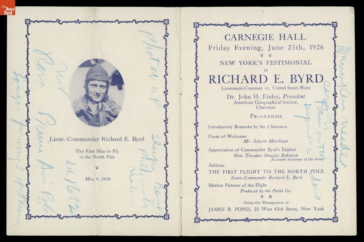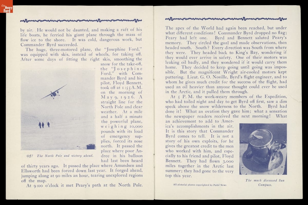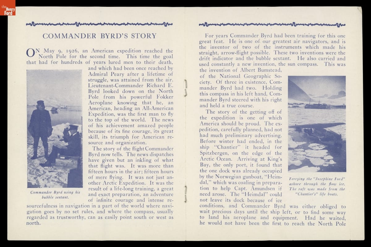 On May 9, 1926, explorer Richard Byrd and pilot Floyd Bennett flew toward the North Pole in the Fokker Tri-Motor Josephine Ford. Following their flight, Byrd and Bennett returned to the United States as heroes, and Byrd presented lectures recounting the polar journey. Though Byrd is generally credited with success, controversy remains over whether he reached the actual pole.