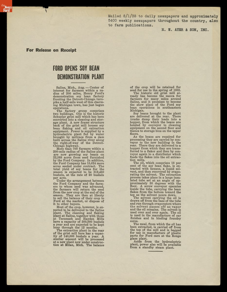 Ford Opens Soy Bean Demonstration Plant, August 1938