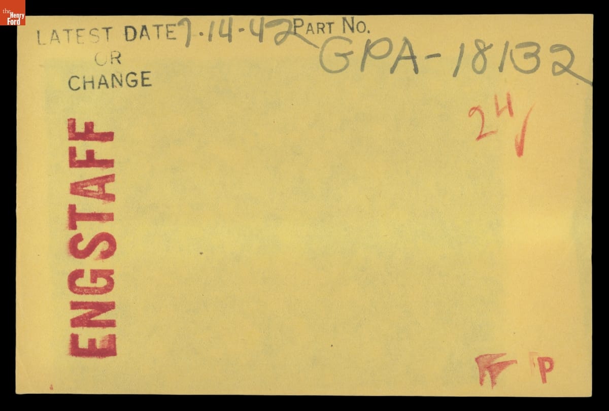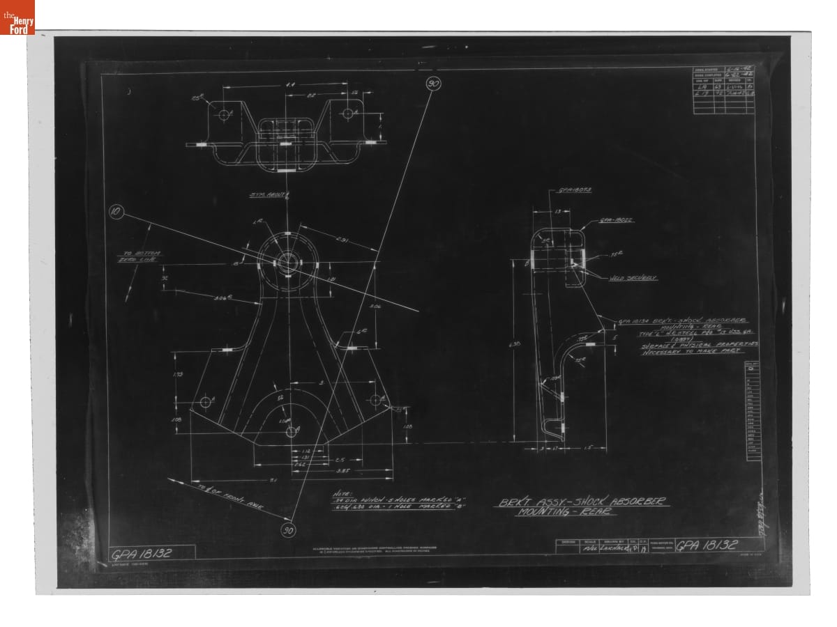 The Ford Motor Company created over a million parts drawings from 1903 to 1957. Many of these drawings specify engineering requirements for the components of Ford-made vehicles--including automobiles, trucks, tractors, military vehicles and Tri-motor airplanes. Others document assembly components, stages of casting and forging, or experimental designs. Beginning in the 1940s, Ford transferred the drawings to microfilm.