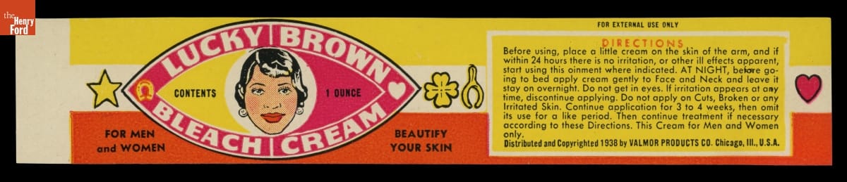 Valmor Product Company, founded in the mid-1920s, sold beauty products to Black Americans. The company's product packaging was designed by Charles Dawson, a successful Black commercial artist whose illustrations of attractive modern Black Americans contributed to a burgeoning culture of positive Black identity. But the company's legacy is complicated--many of its products pushed a white assimilatory ideal, promising effects like skin lightening.