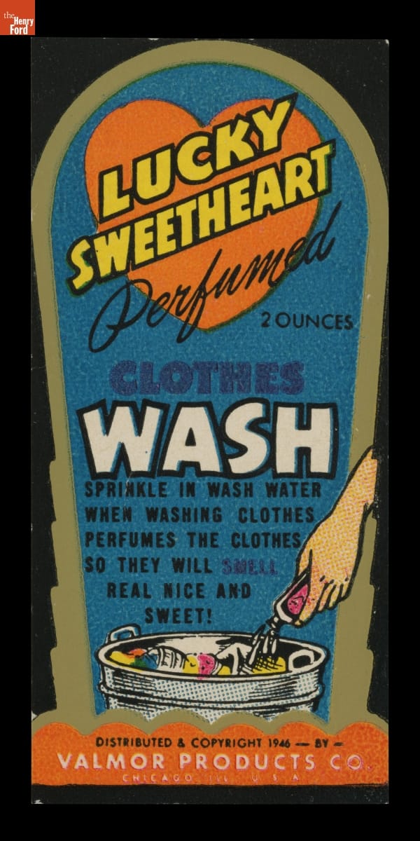 Product Label for Valmor Lucky Sweetheart Perfumed Clothes Wash, 1946
