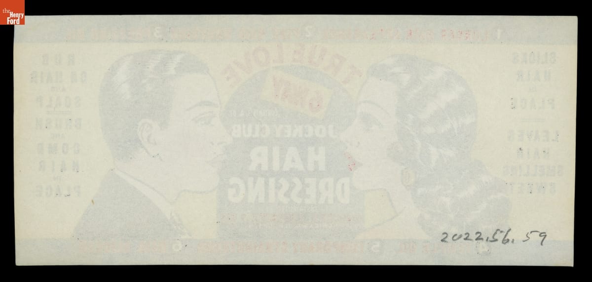 Product Label for True Love 6Way Jockey Club Hair Dressing, 1926-1946