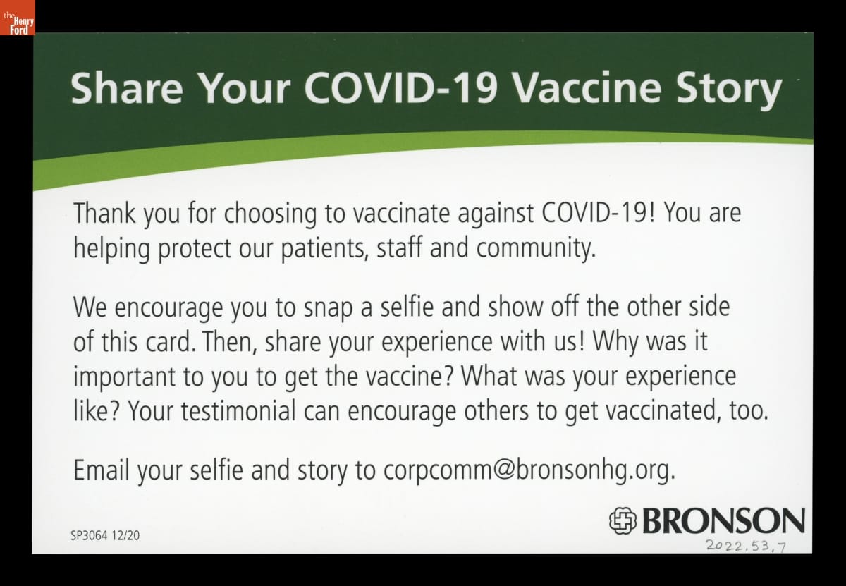 I Got My COVID-19 Vaccine, Bronson Healthcare, December 2020
