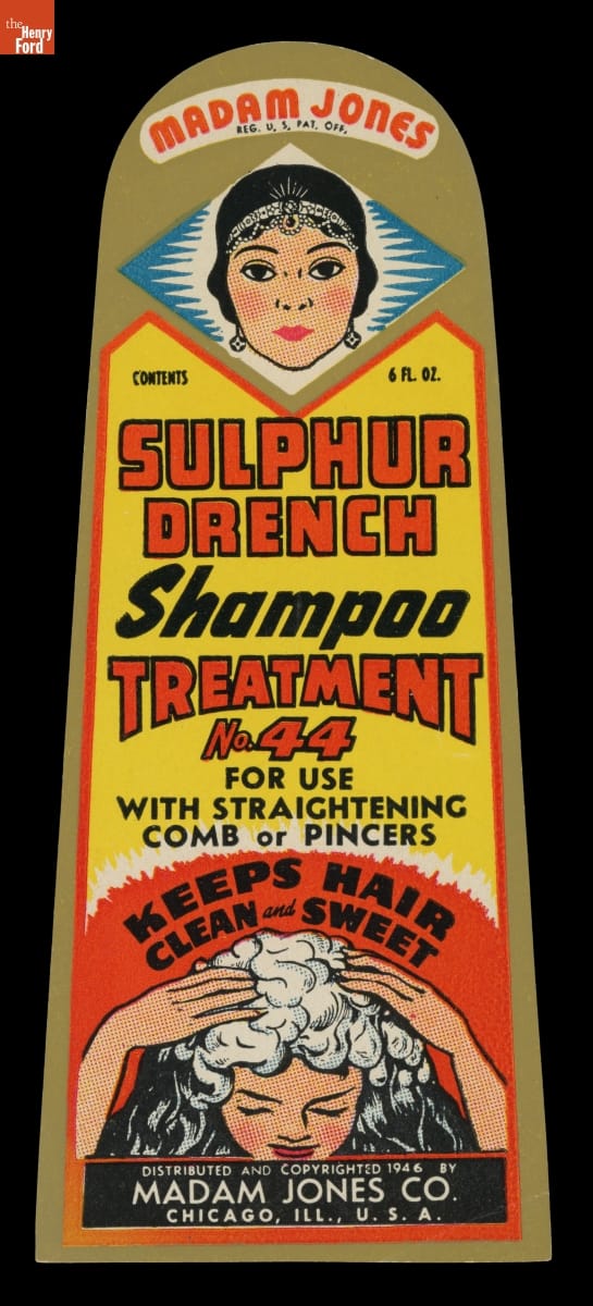 Product Label for Madam Jones Sulphur Drench Shampoo Treatment No. 44, 1946
