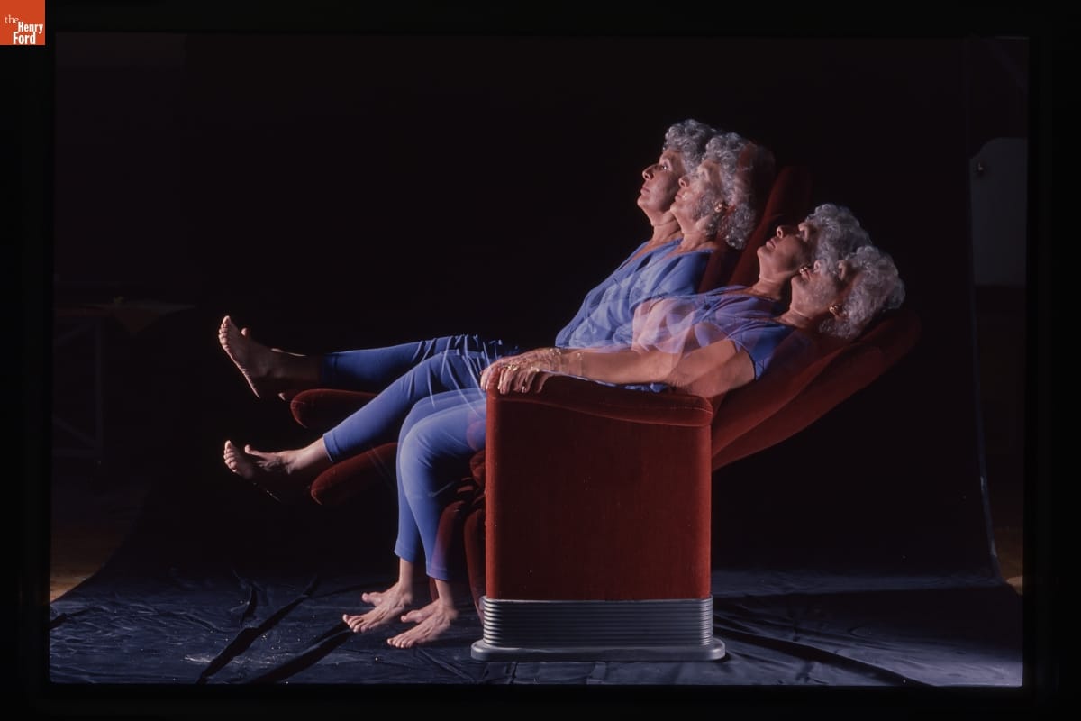 Woman in Motion Study with Prototype Sarah Chair, 1987-1991