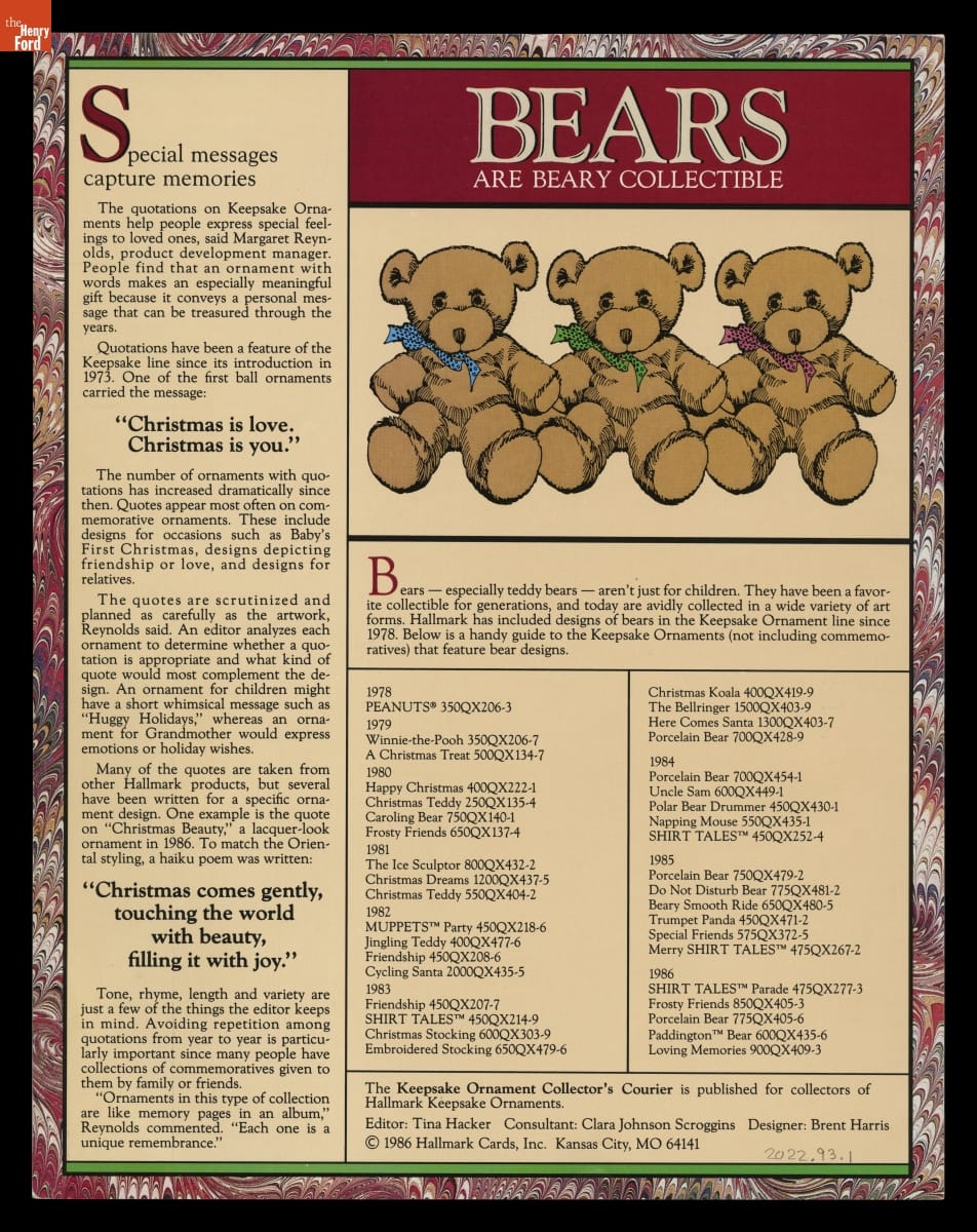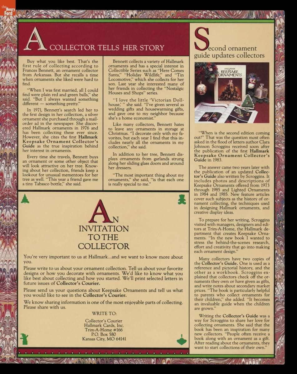 "Hallmark Keepsake Ornament Collector's Courier," Volume 1, Number 1, Fall 1986