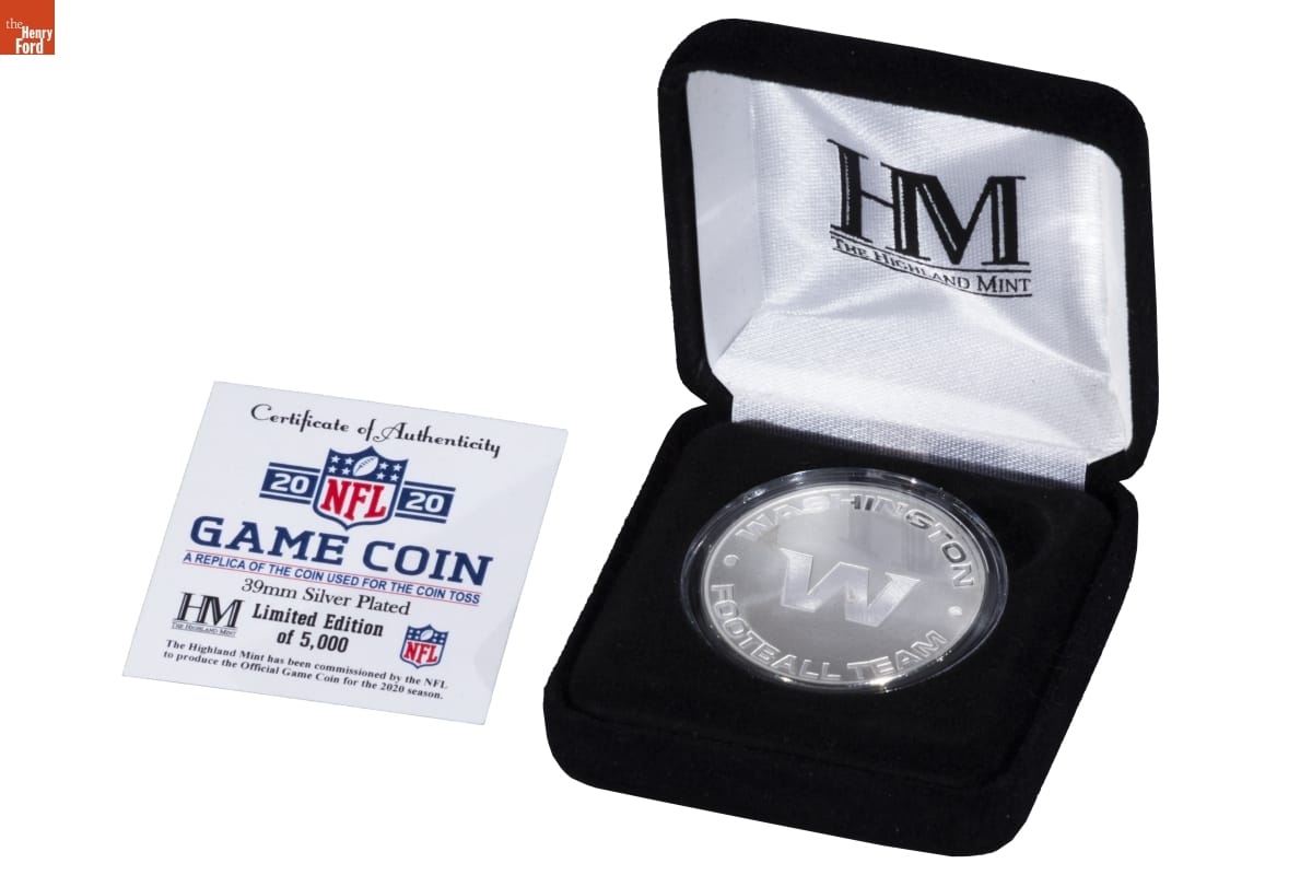 Protests against professional sports team names and logos that portray Indigenous peoples in a derogatory fashion emerged as part of the Indigenous civil rights movements of the mid-20th century. The campaign against the National Football League team headquartered near Washington, D.C., arguably represents the highest-profile example. This limited-edition coin commemorates the team's 2020 season when the franchise finally retired its controversial name and logo.