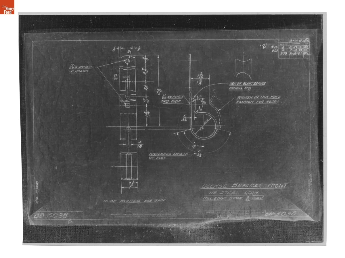 Drawing, "License Bracket - Front," Ford Model BB Truck, March 16, 1932