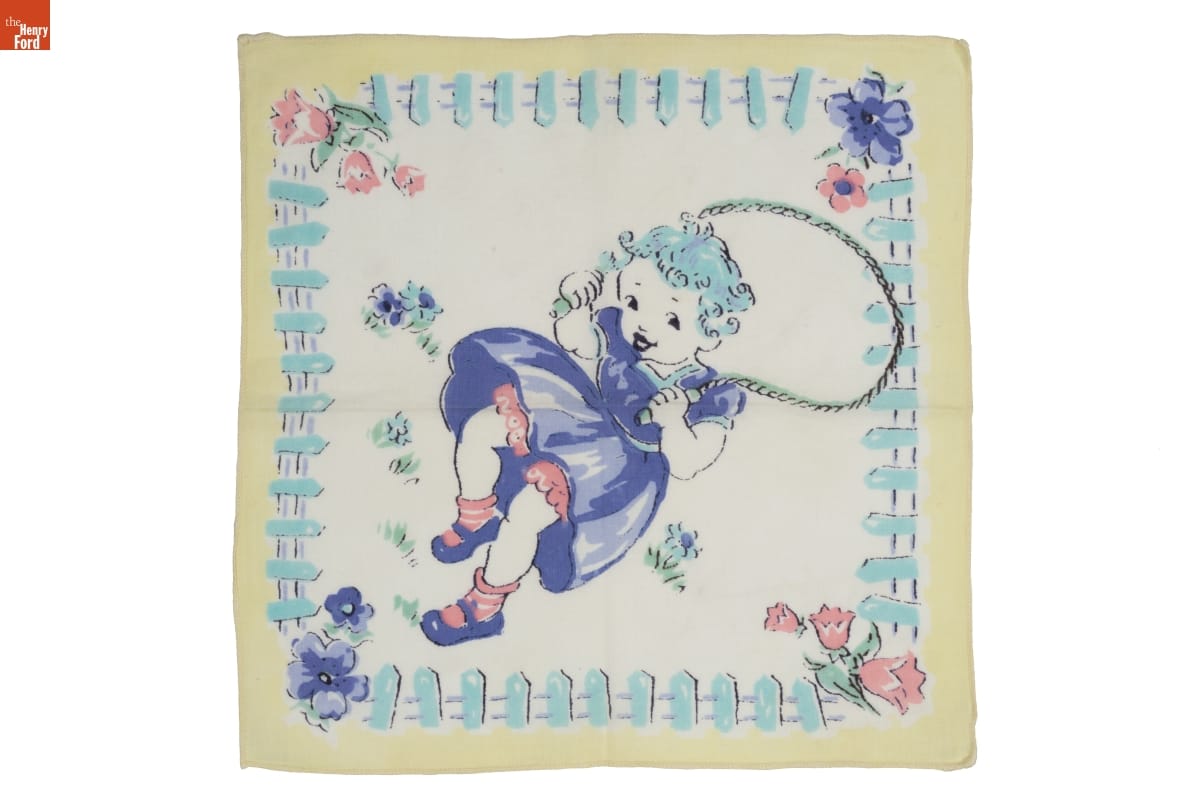 Before disposable tissues became popular, people carried cloth handkerchiefs to help with sneezes and sniffles. Children's versions were made with images and in colors designed to appeal to these smaller folk.