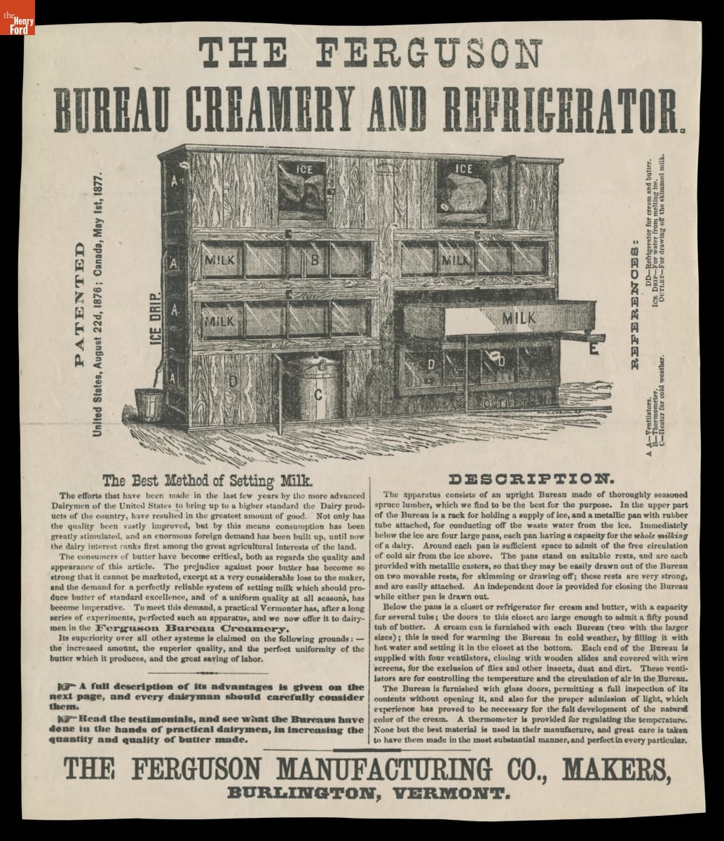 Reproduction of Advertisement for the The Ferguson Bureau Creamery and Refrigerator, circa 1881