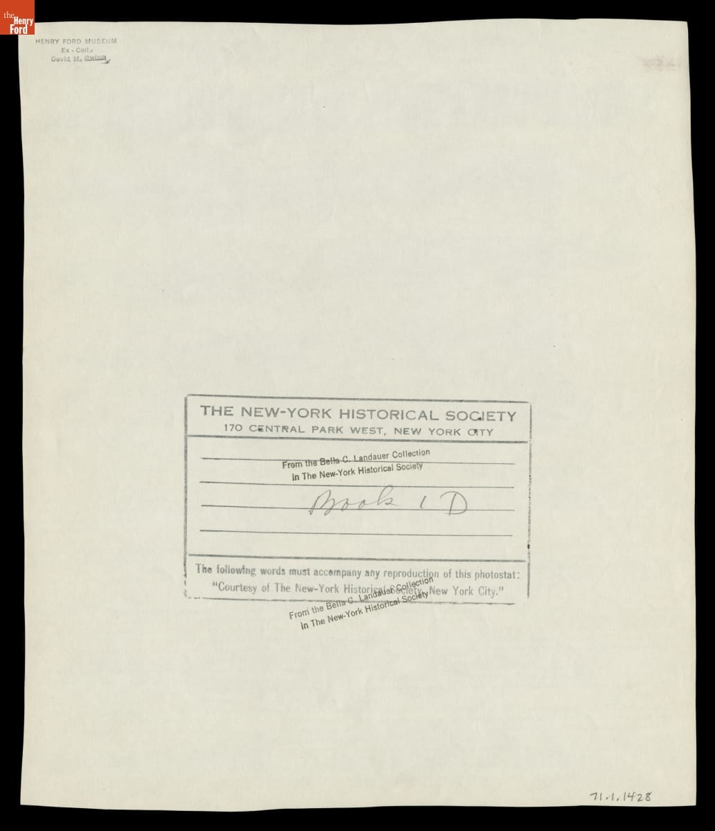 Reproduced from original in the Bella C. Landauer Collection of Business and Advertising Ephemera, PR 031, Department of Prints, Photographs, and Architectural Collections, The New-York Historical Society.