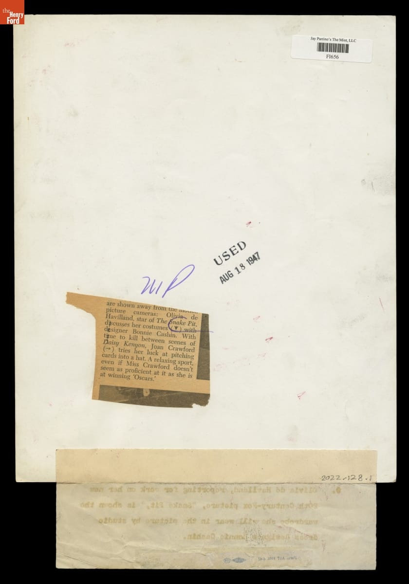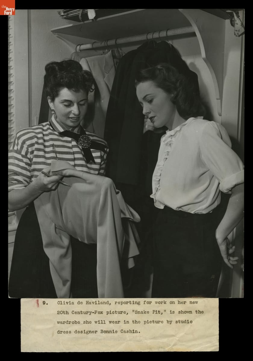 Studio Image of Designer Bonnie Cashin with Actress Olivia de Havilland, 1948