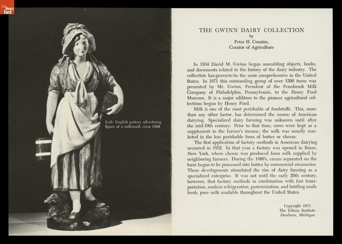 Gwinn Dairy Collection, Henry Ford Museum, Dearborn, Michigan, 1971