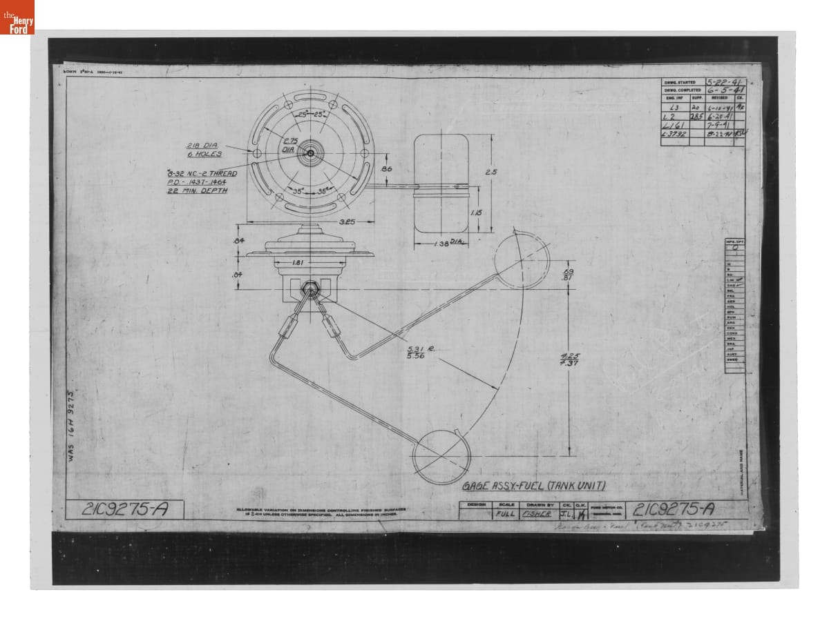 Drawing, "Gage Assy. - Fuel (Tank Unit)," Ford Automobile, August 29, 1941